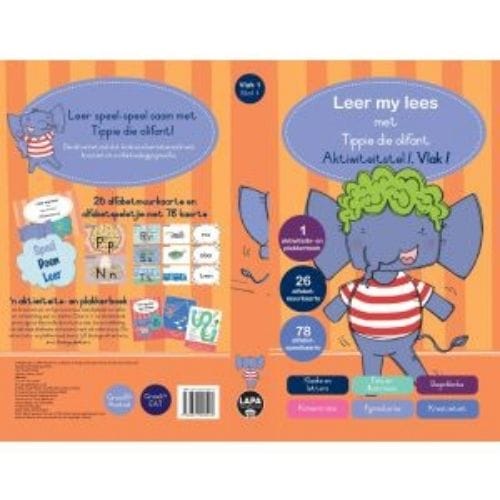 Tippie LML Aktiwiteitstel 1 Vlak 1: 26 alfabetmuurkaarte (A5) en ’n alfabetspeletjie (78 kaarte), en ʼn aktiwiteits- en plakkerboek om kreatiwiteit en fyn motoriese vaardighede te oefen en verbeelding aan te wakker. Daar is ’n verskeidenheid prettige en kleurvolle aktiwiteite wat die ontwikkeling van aktiewe deelname en konsentrasie sal ondersteun. Die aktiwiteits- en plakkerboek bevat 40 bladsye aktiwiteite en 4 bladsye plakkers.